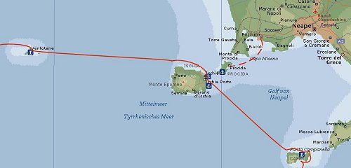 Chiaiolella/Procida - Stromboli - Pignataro/Lipari - Lipari/L. - Capri - Ischia - Castello Aragonese/Ischia - Casamicciola/I - Porto Nuova/Ventotene - Ponza - Procida 127 sm unter Segel - 388 sm unter Motor 515 sm gesamt