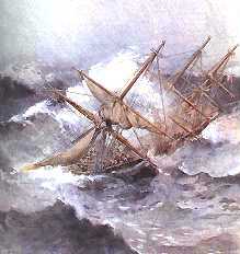 gezwungen. Um nicht auf Leegerwall vor der sardische Küste zu geraten, versucht der Kapitän die Passage durch