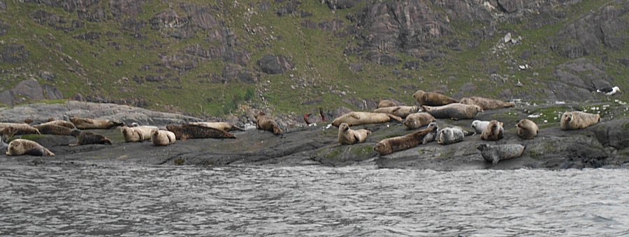 sie auf den glatten Felsinseln liegen: Seehunde. Erst halten wir sie auch für Felsen, als wir