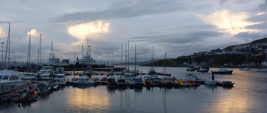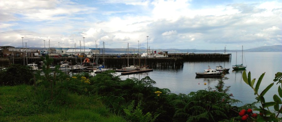 vorgelagerte Insel Ornsay. Entstanden als Heringsfischereihafen Anfang des 19. Jahrhunderts, wird er dann oft von Schiffen aus Glasgow