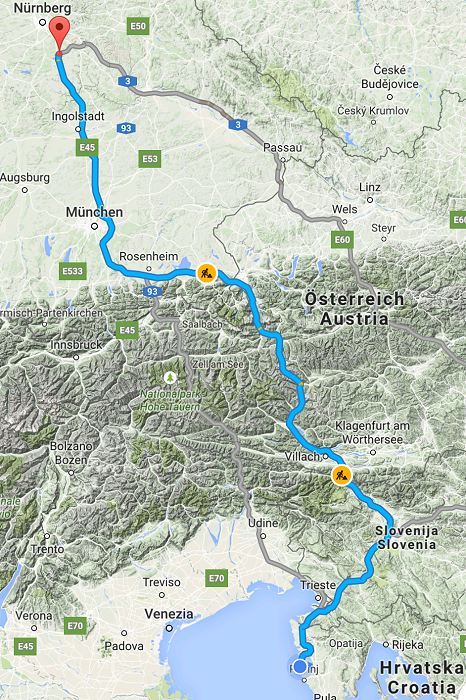 Östlichster Punkt: 45°04,4'N 013°34,8'E (vor Rovinj)