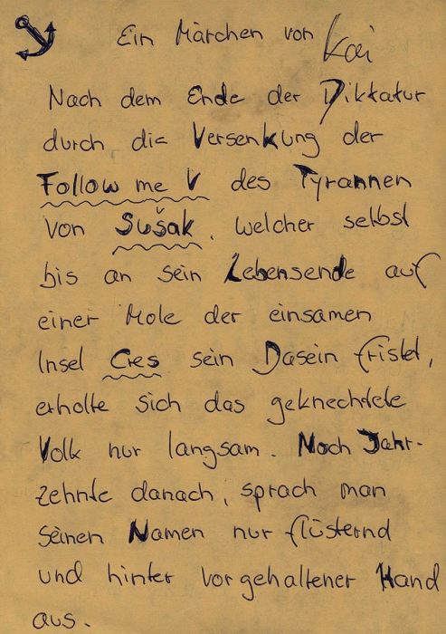 Inhalt einer Flaschenpost in der Hafeneinfahrt Pula: