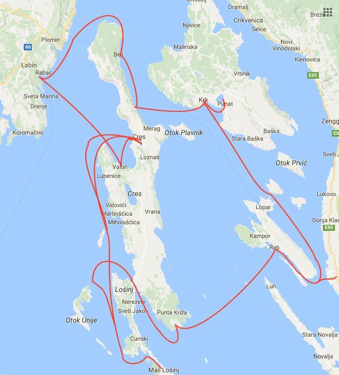 Mali Losinj - Osor - Kanal Kavada - Draga/Mali Losinj - Rab/Rab - Barbatski-Kanal - U Zavratnica - Krk/Krk - Punat/Krk